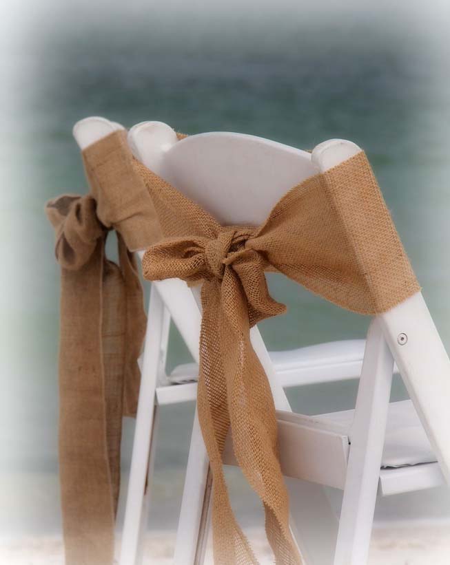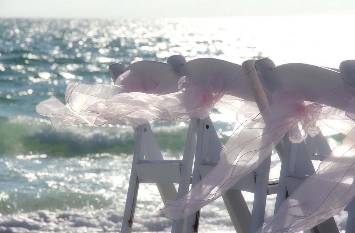 Chairs along the aisle can be tied differently or we can decorate with handmade pieces to reflect your style and enhance the beach setting.
